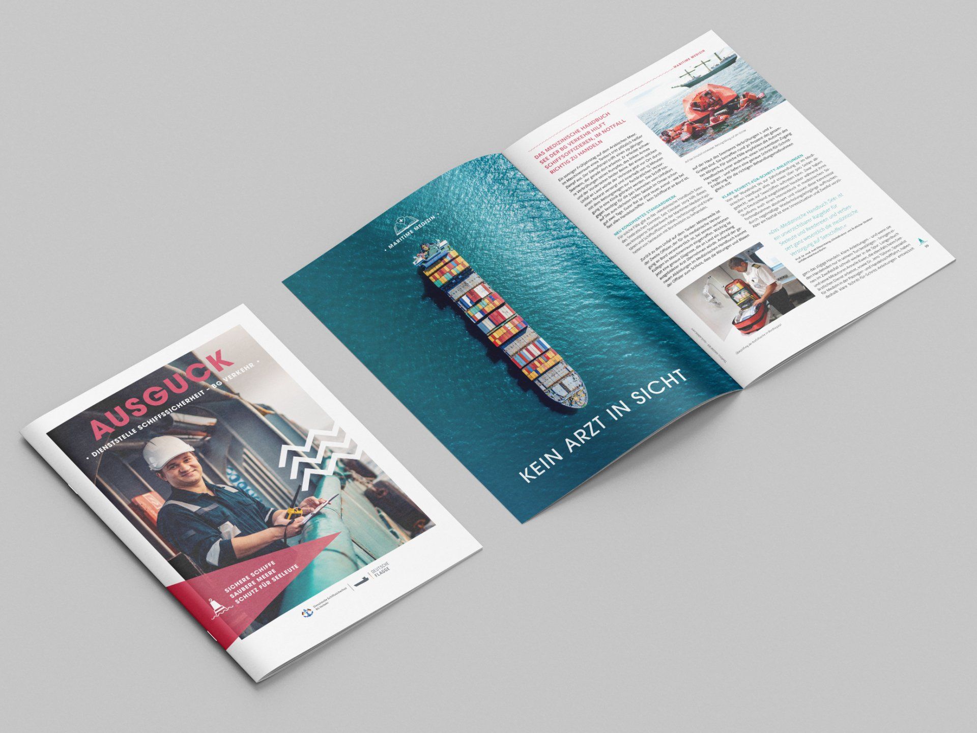 Für die Dienststelle Schiffssicherheit haben wir, das "Studio Hoch 5", einen Seeschifffahrts-Report gestaltet. Wir waren hierbei für die komplette Layoutgestaltung, die Bildauswahl und für die Illustrationen verantwortlich.